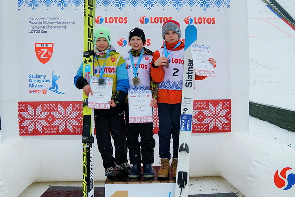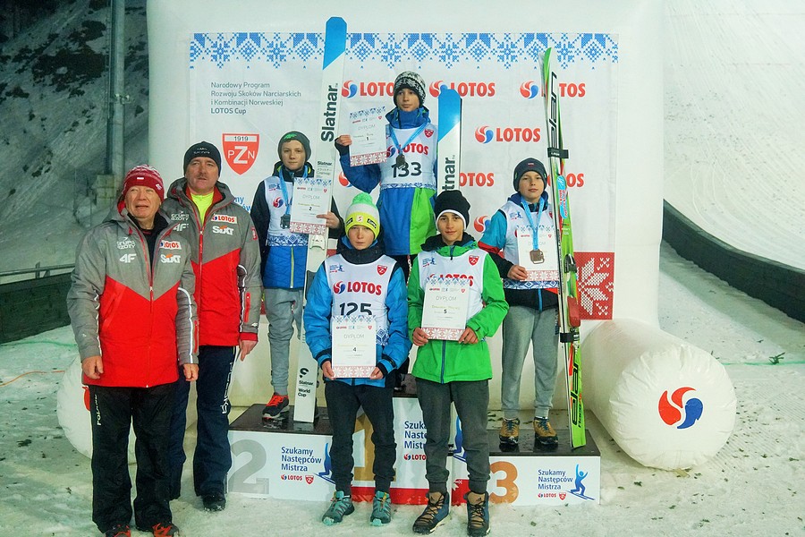 Wielki sukces w kategorii Junior C odniósł dzisiaj Karol Niemczyk (69,5 i 70,5 m). Reprezentant klubu LKS Klimczok Bystra po raz pierwszy w karierze odniósł zwycięstwo w zawodach LOTOS Cup, pewnie wygrywając piątkowy konkurs. - Jest szczęście i adrenalina, bo w końcu to moje pierwsze zwycięstwo i fajnie jest wygrać - mówi zadowolony Niemczyk. - Zawody były ogólnie dla mnie udane. Jestem obecnie w dobrej dyspozycji i dogoniłem tych, którzy byli dużo przede mną. Cieszę się z tego bardzo - dodaje. - W ostatnim czasie głównie pracowałem nad odbiciem, bo trochę mi wyjeżdżało, przez co nie miałem takiej siły jak inni. Ale skoki dzisiaj były naprawdę bardzo dobre, mi się podobały i teraz tylko, aby je utrzymać - podsumowuje podopieczny Jarosława Koniora. O 3,2 punktu za Niemczykiem uplasował się Adam Niżnik (69 i 70 m) z TS Wisły Zakopane, który objął dzisiaj prowadzenie w klasyfikacji generalnej cyklu, zdobywając żółtą koszulkę lidera. Trzecie miejsce wywalczył Kacper Juroszek z WSS Wisła, który dwukrotnie lądował na 70 metrze.