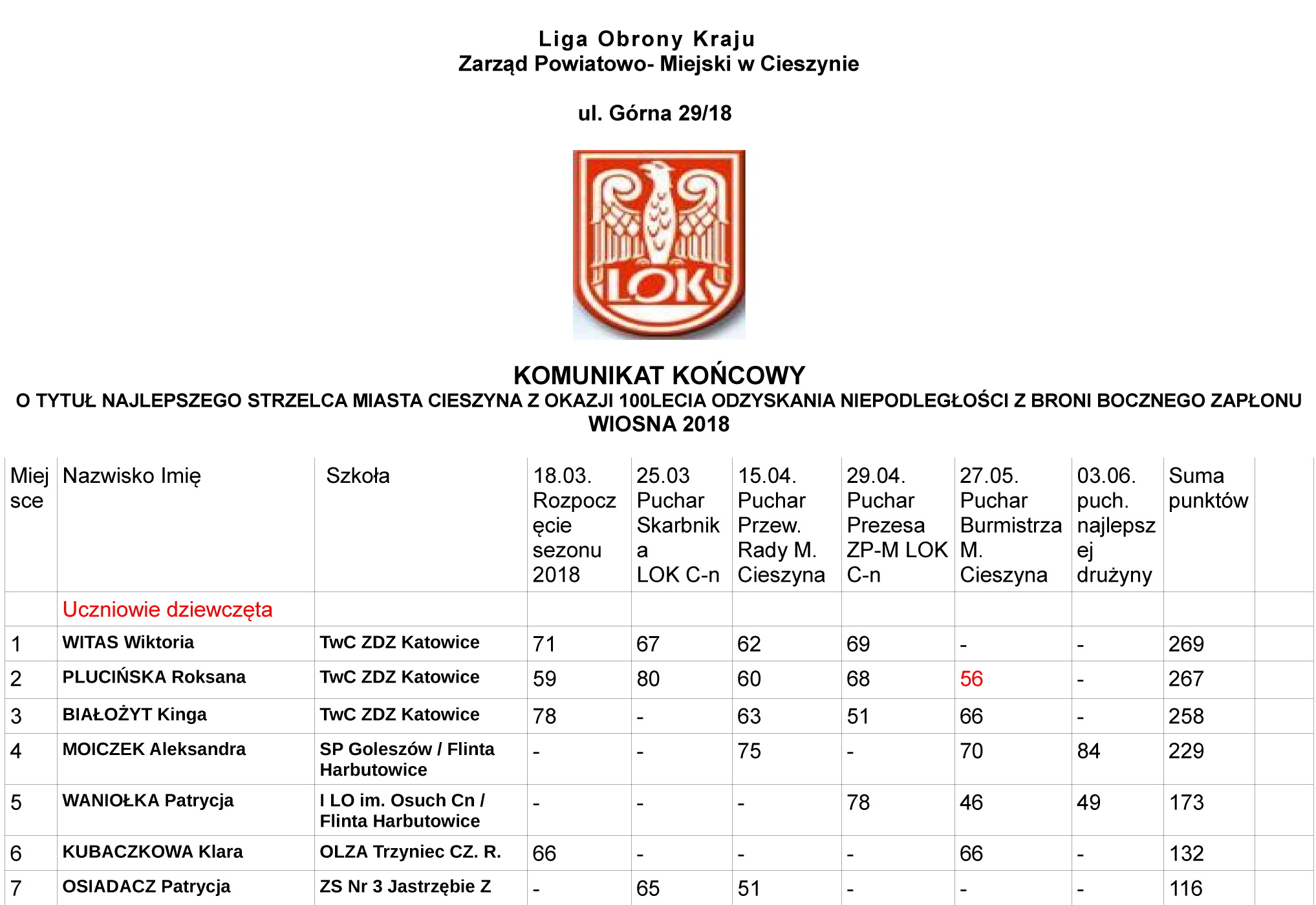 Zakończyły się zmagania o Tytuł Najlepszego Strzelca Miasta Cieszyn z okazji 100-lecia Odzyskania Niepodległości z broni bocznego zapłonu.