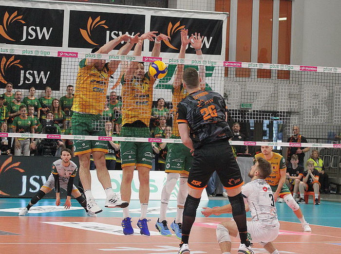 Początek niedzielnej konfrontacji należał do naszej drużyny, która po asie serwisowym Jurija Gladyra prowadziła 3:1. Miguel Tavares odpowiedział tym samym i był remis 3:3. Pojedynczy blok Norberta Hubera na Mateuszu Bieńku oznaczał wynik 5:3, ale Bartosz Kwolek wyrównał stan seta asem serwisowym (5:5). Błąd Trévora Clevenota w ataku ponownie dał gospodarzom dwupunktowe prowadzenie (7:5). Atak Rafała Szymury z piłki przechodzącej zwiększył przewagę do trzech punktów (9:6). W następnej akcji Huber dołożył asa i w tym momencie trener Michał Winiarski wziął pierwszą przerwę na żądanie (10:6). Karol Butryn zripostował asem i prowadzenie jastrzębian stopniało do dwóch punktów. Za moment udana kontra Kwolka sprawiła, że było już tylko 11:10. Kapitalny blok Hubera na Clevenocie ponownie dał nam gospodarzom głębszy oddech (15:12). Kontra Fornala utrzymała nasze trzypunktowe prowadzenie (16:13). Zaraz potem Szymura w kontrze obił ręce blokujących Warty. To było równoznaczne z drugą przerwą na żądanie szkoleniowca gości. Po pauzie miejscowi dołożyli dwa punkty (blok na Butrynie oraz as Fornala). Rywale nieco odrobili straty (20:16), ale nasi siatkarze nadal kontrolowali wydarzenia na parkiecie. Premierowego seta zakończył as Jurija Gladyra.
